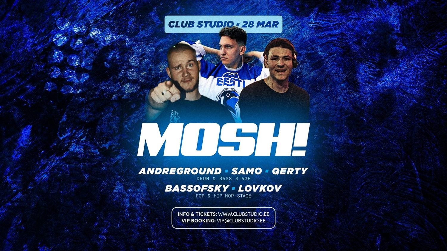 MOSH naaseb Studiosse järjekordse energilise drum & bass peoga. Laval on MOSH residendid SAMO ja ANDREGROUND, meie sõbrad Selectast toovad kaasa QERTY, kes näitab MOSH publikule värsket DnB soundi, ning esimesel korrusel teeb oma MOSH debüüdi BASSOFSKY.